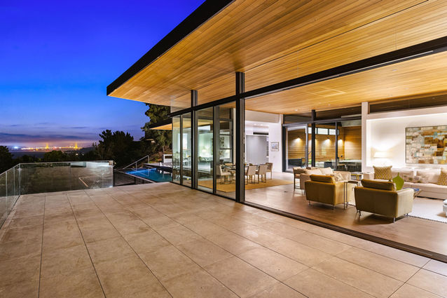 Stunning pool with expansive view decks and outdoor entertaining areas.